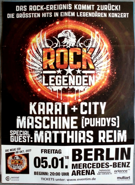 ROCK LEGENDEN - 2018 - Karat - City - Puhdys - In Concert - Poster - Berlin